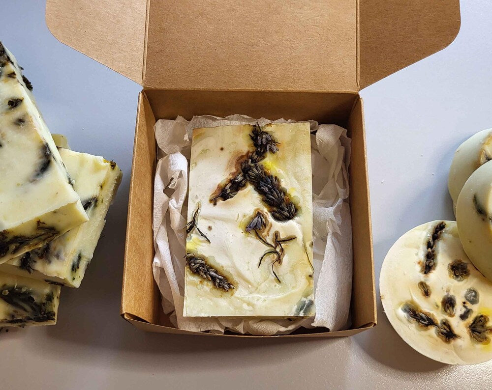 Our creations are born from simple, honest ingredients — shea butter, coconut oil, olive oil, natural clays, herbs, and essential oils.